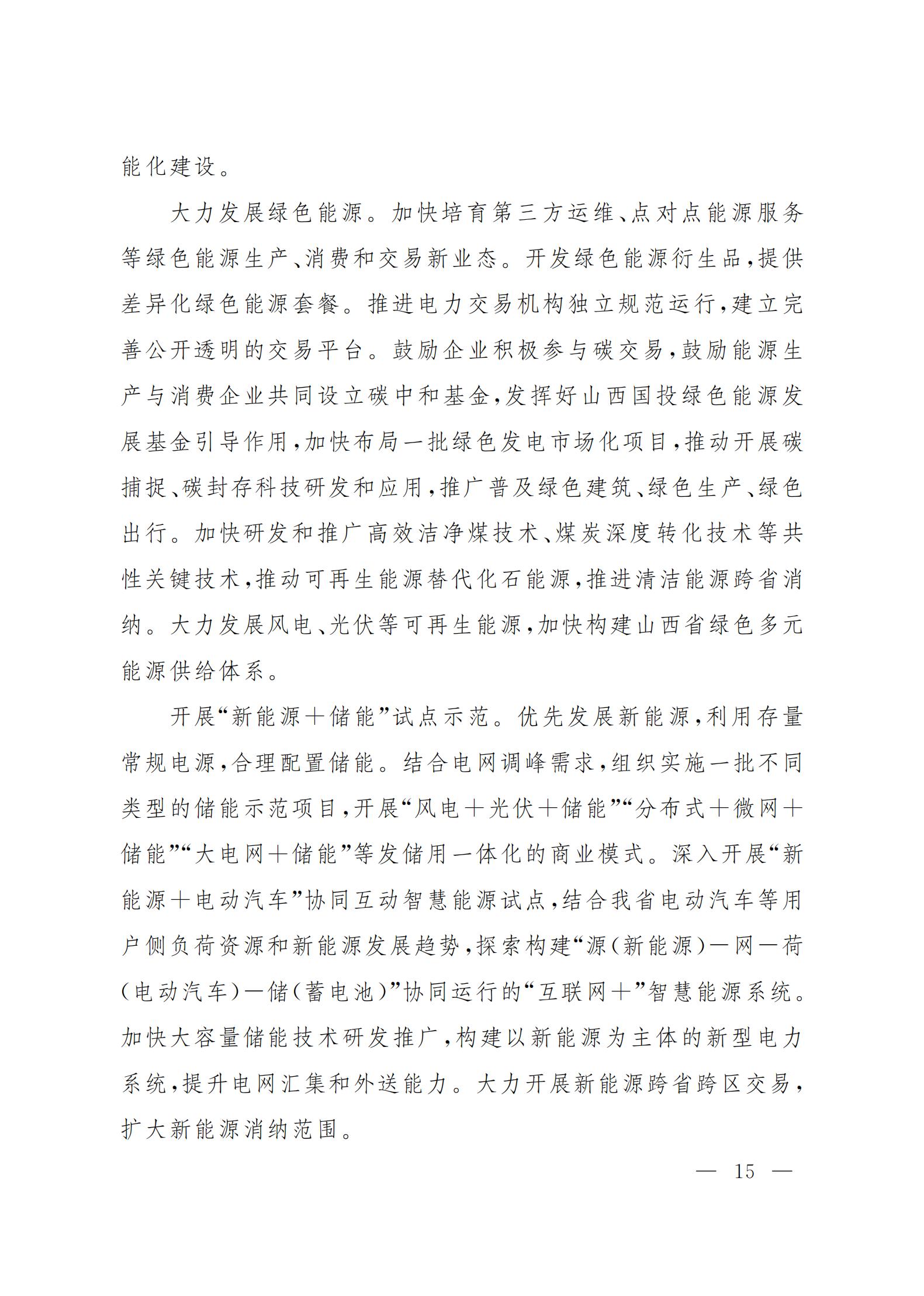 近日,山西省人民政府印發(fā)山西省“十四五”新業(yè)態(tài)規(guī)劃的通知。文件中提出要開展“新能源+儲能”試點(diǎn)示范。 大力發(fā)展綠色能源。加快培育第三方運(yùn)維、點(diǎn)對點(diǎn)能源服務(wù)等綠色能源生產(chǎn)、消費(fèi)和交易新業(yè)態(tài)。開發(fā)綠色能源衍生品,提供差異化綠色能源套餐。推進(jìn)電力交易機(jī)構(gòu)獨(dú)立規(guī)范運(yùn)行,建立完善公開透明的交易平臺。鼓勵企業(yè)積極參與碳交易,鼓勵能源生產(chǎn)與消費(fèi)企業(yè)共同設(shè)立碳中和基金,發(fā)揮好山西國投綠色能源發(fā)展基金引導(dǎo)作用,加快布局一批綠色發(fā)電市場化項(xiàng)目,推動開展碳捕捉、碳封存科技研發(fā)和應(yīng)用,推廣普及綠色建筑、綠色生產(chǎn)、綠色出行。加快研發(fā)和推廣高效潔凈煤技術(shù)、煤炭深度轉(zhuǎn)化技術(shù)等共性關(guān)鍵技術(shù),推動可再生能源替代化石能源,推進(jìn)清潔能源跨省消納。大力發(fā)展風(fēng)電、光伏等可再生能源,加快構(gòu)建山西省綠色多元能源供給體系。 開展“新能源+儲能”試點(diǎn)示范。優(yōu)先發(fā)展新能源,利用存量常規(guī)電源,合理配置儲能。結(jié)合電網(wǎng)調(diào)峰需求,組織實(shí)施一批不同類型的儲能示范項(xiàng)目,開展“風(fēng)電+光伏+儲能”“分布式+微網(wǎng)+儲能”“大電網(wǎng)+儲能”等發(fā)儲用一體化的商業(yè)模式。深入開展“新能源+電動汽車”協(xié)同互動智慧能源試點(diǎn),結(jié)合我省電動汽車等用戶側(cè)負(fù)荷資源和新能源發(fā)展趨勢,探索構(gòu)建“源(新能源)-網(wǎng)-荷(電動汽車)-儲(蓄電池)”協(xié)同運(yùn)行的“互聯(lián)網(wǎng)+”智慧能源系統(tǒng)。加快大容量儲能技術(shù)研發(fā)推廣,構(gòu)建以新能源為主體的新型電力系統(tǒng),提升電網(wǎng)匯集和外送能力。大力開展新能源跨省跨區(qū)交易,擴(kuò)大新能源消納范圍。