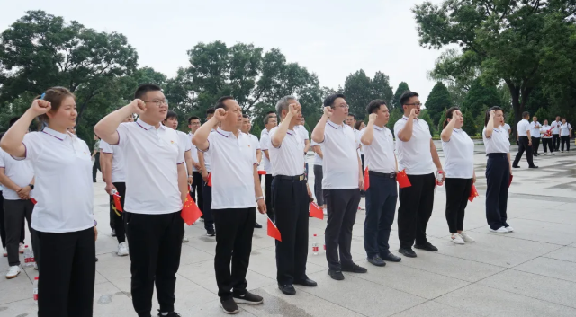 祥睿能源董事長帶領全體員工在與歷史文物的對話中接受思想洗禮,在烈士紀念碑前重溫入黨誓詞,把不變初心和鏗鏘誓言說與英烈聽。
