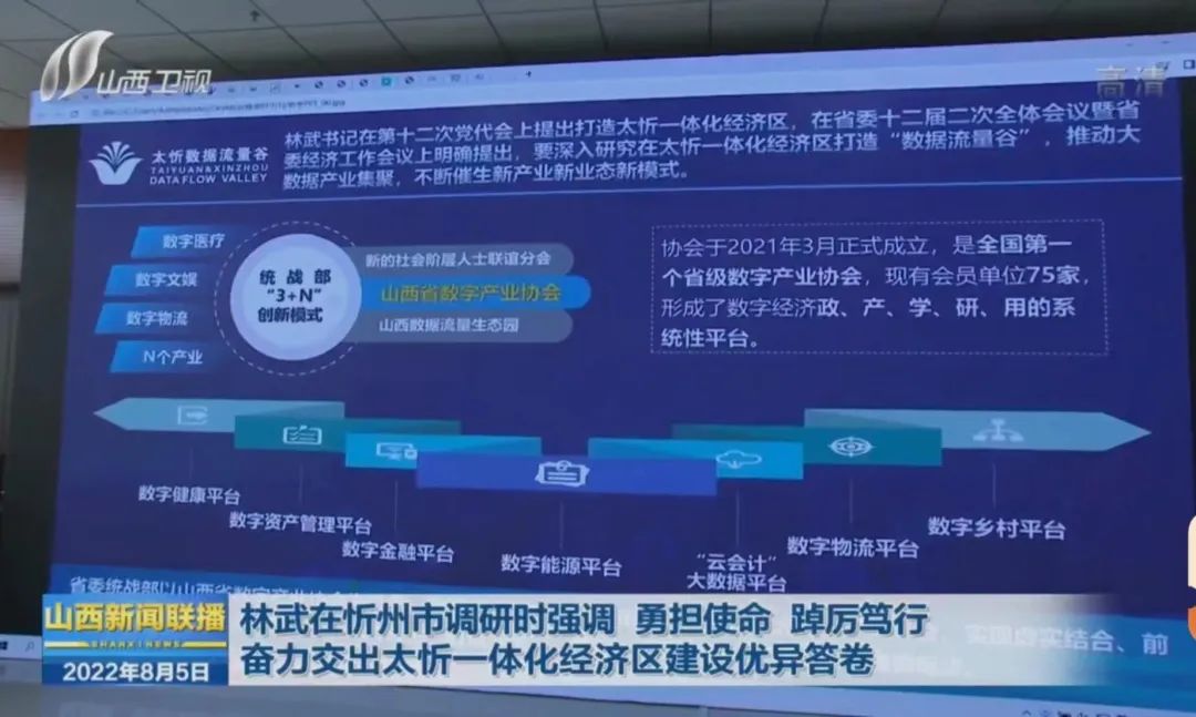 8月3日,林武首先來到太忻數(shù)據(jù)流量谷,聽取規(guī)劃建設、平臺服務、招商引資等情況介紹,與華為、百度、時光軸、祥睿能源等入園企業(yè)項目負責人交流。省工商聯(lián)副主席、祥睿能源董事長王正通代表山西數(shù)字產(chǎn)業(yè)協(xié)會,就太忻數(shù)據(jù)流量谷三大建設思路向林武書記進行了匯報:一是迅速匯集,打造“7+N”數(shù)據(jù)平臺和數(shù)據(jù)產(chǎn)業(yè)鏈體系;二是虛實結合,通過數(shù)字化、綠色化產(chǎn)業(yè)平臺帶動高端裝備制造業(yè)形成前輕后重的太忻模式;三是通過數(shù)據(jù)流量谷形成賦能山西傳統(tǒng)產(chǎn)業(yè)轉型的生態(tài)體系。