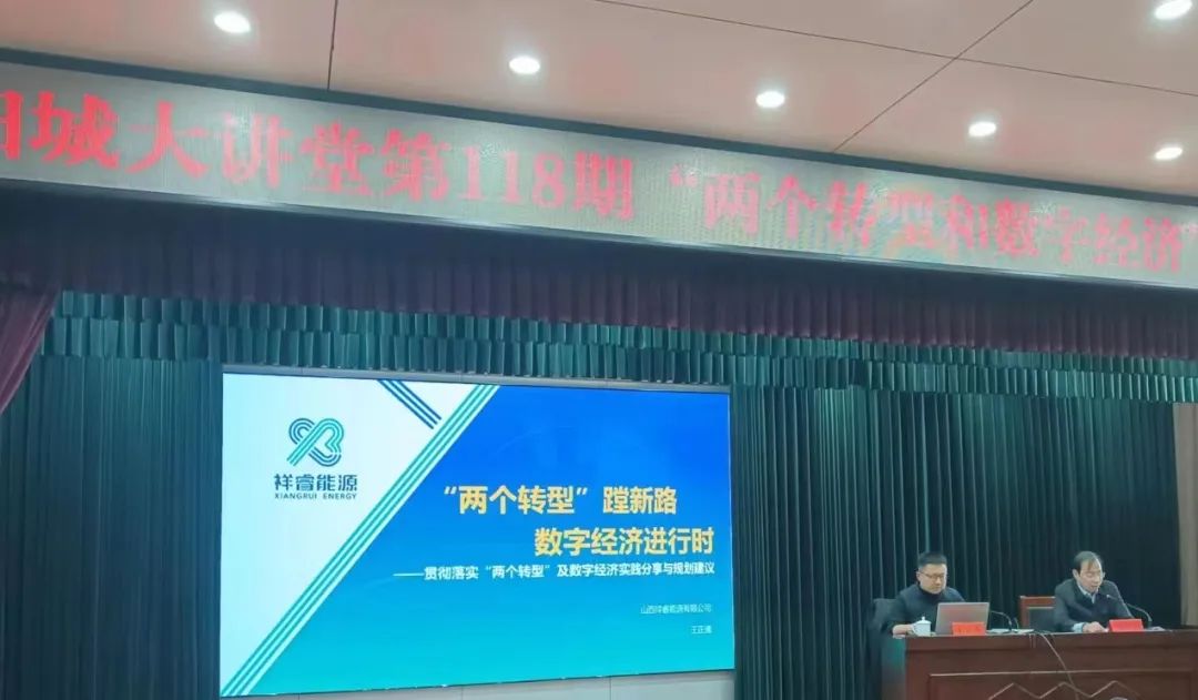 10月21日,山西省工商聯(lián)副主席、省數字產業(yè)協(xié)會支部書記、祥睿能源董事長王正通,作為我省“兩個轉型”會議發(fā)言代表,受陽城縣縣委、縣政府邀請,在陽城縣數字經濟專題講座上,以“兩個轉型”蹚新路,數字經濟進行時為題,就貫徹落實數字經濟和“兩個轉型”實踐進行了解讀,并結合全省數字經濟發(fā)展趨勢和要求以及當地資源特色,為陽城縣出謀劃策、支招賦能。陽城縣縣委中心組成員,各鄉(xiāng)鎮(zhèn)黨委書記、鄉(xiāng)鎮(zhèn)長,縣直單位主要領導,縣管企業(yè)負責人,開發(fā)區(qū)中層以上領導等參加,由陽城縣副縣長楊二強主持專題講座。