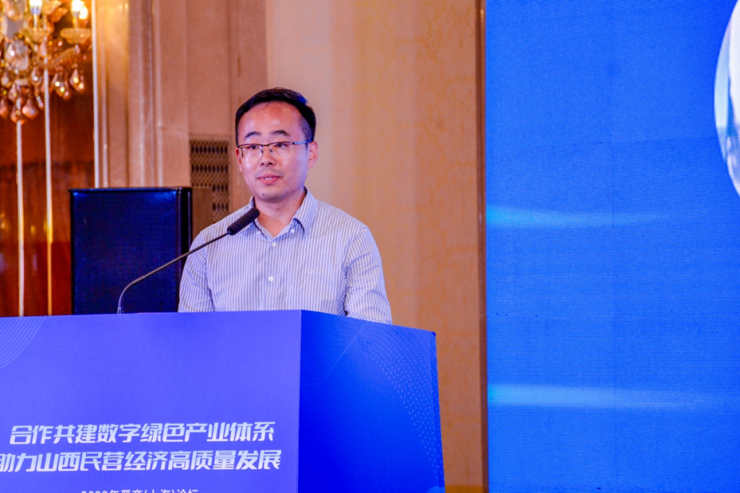 (從左到右:毛紅宇、鄧璐、郭延斌、戴寶林、鄭梓豪) 山西省委統(tǒng)戰(zhàn)部副部長郭延斌上臺見證并與山西綠色交通運營有限公司(由山西祥睿能源有限公司控股 鄧璐代表)、山西低碳環(huán)保產(chǎn)業(yè)集團(毛紅宇代表)、豪爾賽科技集團股份有限公司董事長戴寶林、山西鵬飛集團有限公司副總裁鄭梓豪四家企業(yè)代表,共同啟動了“綠色交通創(chuàng)新產(chǎn)業(yè)聯(lián)盟”。聯(lián)盟的主要目的是為民營企業(yè)提供一個生態(tài)合作平臺,以滿足山西在碳達峰和碳中和發(fā)展方面的需求為導向。聯(lián)盟將充分整合并發(fā)揮各成員單位的優(yōu)勢,積極進行電動重卡等領域的技術創(chuàng)新和工程應用研究,共同推動綠色交通運輸系統(tǒng)解決方案的實際實施,最終建成山西甚至全國范圍內(nèi)最富有創(chuàng)新性、前瞻性和權威性的服務聯(lián)盟。 主旨演講:聚焦雙碳共話綠色能源市場與未來