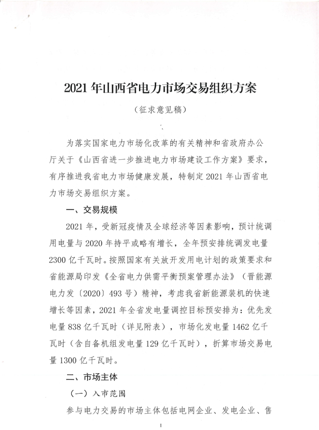 | 山西確定2021年市場交易電量1300億千瓦時 取消雙邊交易 |