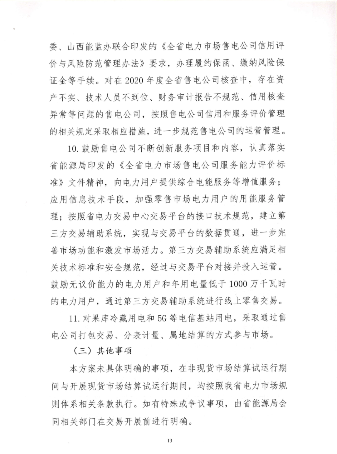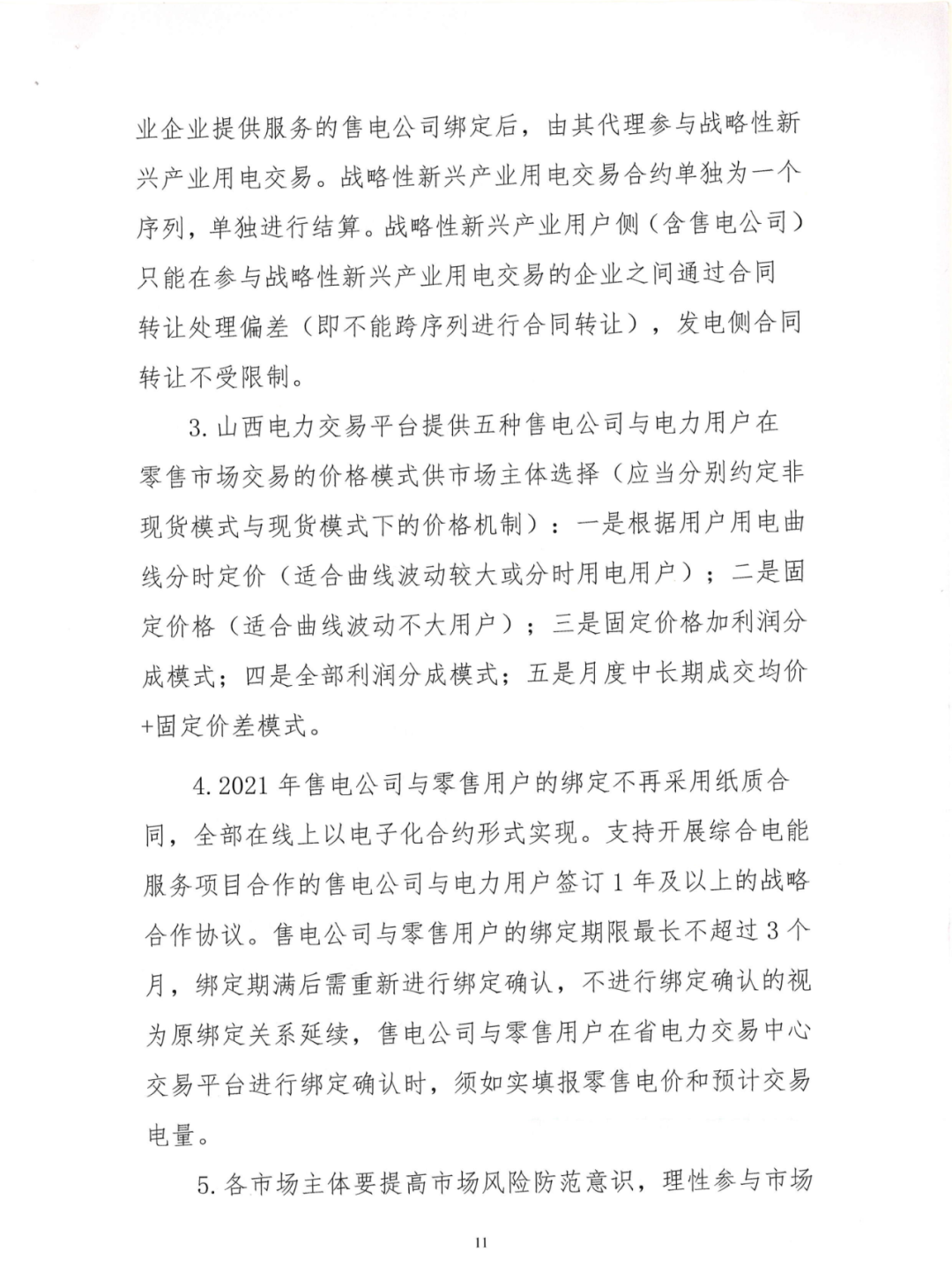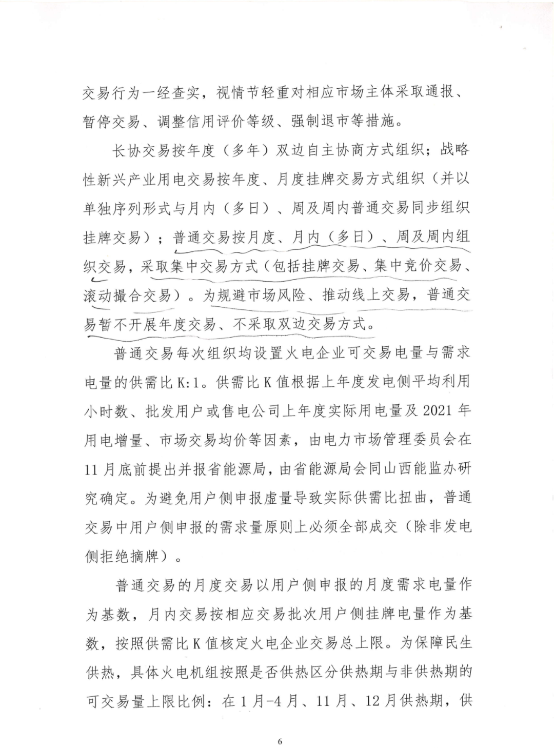 山西近期出臺《2021年山西省電力市場交易組織方案(征求意見稿)》。其中稱為規(guī)避市場風(fēng)險、推動線上交易,普通交易暫不開展年度交易、不采取雙邊交易方式。有人反映:取消雙邊交易對明年的市場影響非常大,售電公司可能面臨毀約的風(fēng)險。 2021年山西省發(fā)電量調(diào)控目標(biāo)預(yù)安排為∶優(yōu)先發(fā)電量838億千瓦時,市場化發(fā)電量1462億千瓦時(含自備機組發(fā)電量129億千瓦時),折算市場交易電量1300億千瓦時。 電力用戶∶除居民、農(nóng)業(yè)、重要公用事業(yè)和公益性服務(wù)等行業(yè)電力用戶以及電力生產(chǎn)供應(yīng)所必需的廠用電和線損之外,逐步全面放開經(jīng)營性領(lǐng)域電力用戶參與市場交易。供氣、供熱、供水、污水處理等公用事業(yè)用戶自愿申請參與市場交易,應(yīng)向省電力交易中心提供市場風(fēng)險自擔(dān)承諾書。 執(zhí)行大工業(yè)用電的電力用戶不受電壓等級和電量限制;執(zhí)行一般工商業(yè)用電的電力用戶不受電壓等級限制,但上年度(2019年11 月-2020年10月)用電量要在500萬千瓦時以上(果品冷藏用電和電信基站用電除外),或新投產(chǎn)企業(yè)用電報裝容量要在1500千伏安以上;支持14個戰(zhàn)略性新興產(chǎn)業(yè)和出口加工貿(mào)易類企業(yè)、"煤改電"交易電量全電量參與市場交易,不受電壓等級和電量限制;支持增量配電網(wǎng)試點參與市場交易,擁有配電網(wǎng)運營權(quán)的售電公司、區(qū)域內(nèi)電力用戶以打包形式全電量參與市場交易,不受電壓等級和電量限制。 山西電力交易中心月前組織售電公司及零售用戶綁定結(jié)算方案,對于可能出現(xiàn)的批零價格倒掛情況,售電公司需按合同電量全額現(xiàn)金繳納差額費用,未完成繳納的,將暫停售電公司批零兩級市場合同執(zhí)行,具體按相關(guān)規(guī)則執(zhí)行。暫停合同后的結(jié)算原則。 詳情如下: